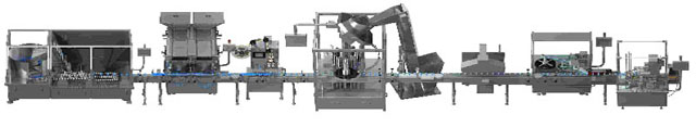 片劑膠囊包裝生產(chǎn)線=理瓶機(jī)+數(shù)粒機(jī)+塞紙機(jī)+旋蓋機(jī)+貼標(biāo)機(jī)
